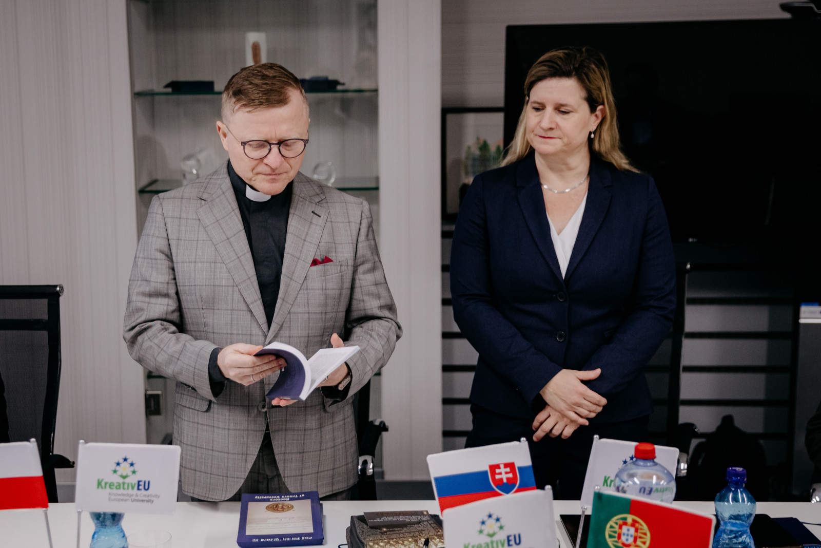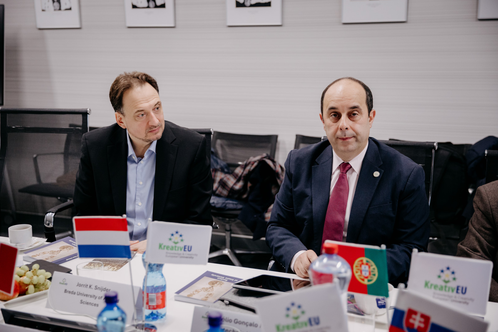 To, že KreativEU nie je len digitálnym spojením na obrazovkách, potvrdili uplynulé dni. Na pozvanie rektora Trnavskej univerzity pricestovali v piatok 6. februára 2026 rektori a zástupcovia partnerských univerzít priamo k nám do Trnavy. Počas oficiálneho pracovného stretnutia spoločne bilancovali úspešný prvý rok, hodnotili dosiahnuté míľniky a otvorene hovorili o výzvach, ktoré nás v budovaní spoločného akademického priestoru čakajú.