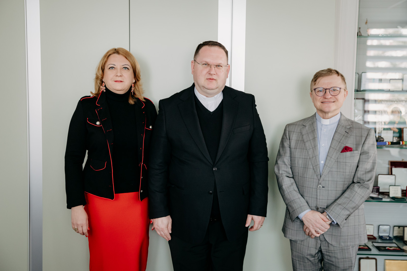 Rektor Trnavskej univerzity v Trnave prof. ThLic. Miloš Lichner, D.Th. prijal dňa 9. marca 2026 v sprievode prorektorky prof. PhDr. Zuzany Lopatkovej, PhD. rektora Pápežského slovenského ústavu a kolégia sv. Cyrila a Metoda v Ríme rev. Dr. Pavla Zvaru, SLL.