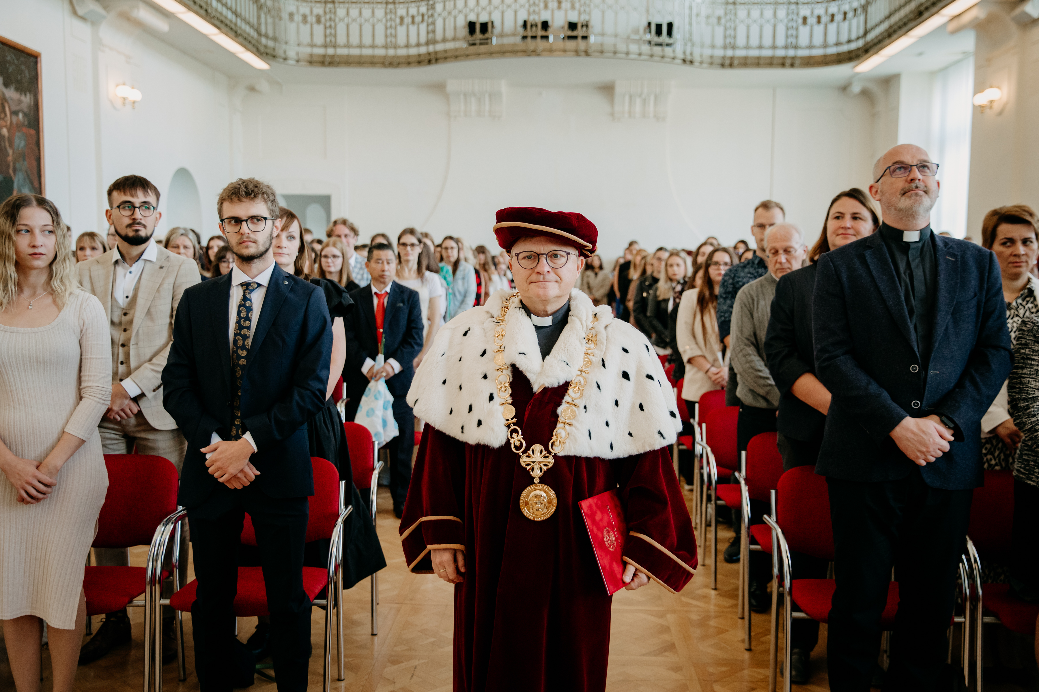Tradičným Veni Sancte a slávnostným zhromaždením akademickej obce 23. septembra 2024 vstúpila Trnavského univerzita do nového, v poradí už 33-ého akademického roka. "Je to jedinečný okamih, keď po letných mesiacoch oddychu a osobných dobrodružstiev opäť vstupujeme do priestoru, kde sa stretáva túžba po poznaní s odvahou hľadať odpovede na najdôležitejšie otázky nášho sveta. Univerzita je miestom, kde sa naše cesty znovu stretávajú a spoločne pokračujeme v rozvoji nielen našich vedomostí, ale aj osobností," privítal celú akademickú obec poverený rektor Trnavskej univerzity profesor Miloš Lichner.