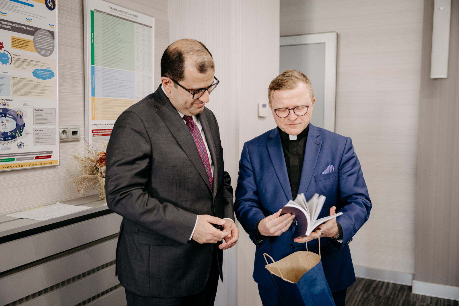 Inkluzívne univerzitné vzdelávanie a jeho medzinárodný kontext, podpora dialógu a tolerancie medzi národmi a náboženstvami, význam kultúrnej diplomacie a potreba snahy o spoločné dobro či všeobecný rozvoj. To boli hlavné témy stretnutia, ktoré sa uskutočnilo 12. marca 2026 na pôde rektorátu Trnavskej univerzity v Trnave.