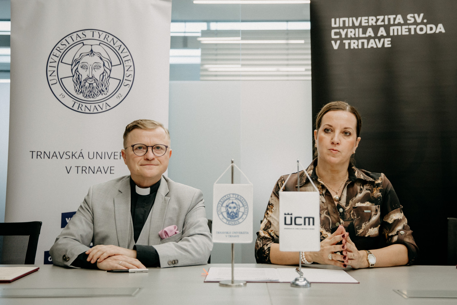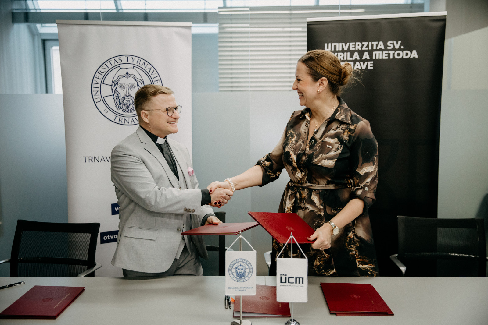 Trnava 4. 12. 2025 – Rektori Univerzity sv. Cyrila a Metoda (UCM) a Trnavskej univerzity (TRUNI) dnes slávnostne podpísali dokumenty k udeleniu internej akreditácie na nové, spoločné profesijne orientované študijné programy Ekosystémové vedy a environmentálne zmeny, Psychológia reklamy a spotrebiteľa a Turistický sprievodca.