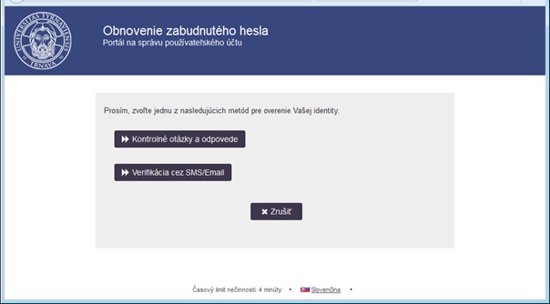 5. Po jeho zadaní môžete zvoliť jednu z ďalších možností overenia Vašej identity dve možnosti overenia Vašej identity: